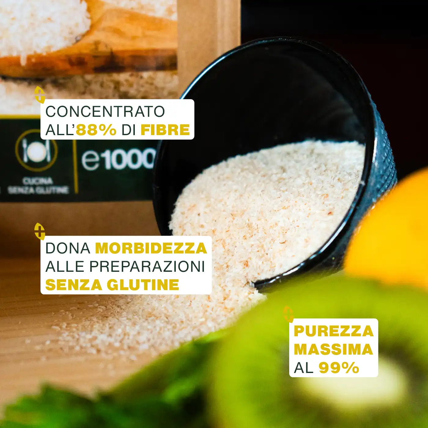 PUREZZA AL 99%, ALTA QUALITÀ: le nostre Bucce di Psillio Biondo Bio hanno una purezza massima del 99%, la massima qualità ottenibile sul mercato, dal momento che, mediamente la purezza delle bucce di psillio si situa tra il 95% e il 98%. Garantiamo inoltre una concentrazione di fibre pari all'88%, in modo da offrirti un prodotto di grande efficacia.