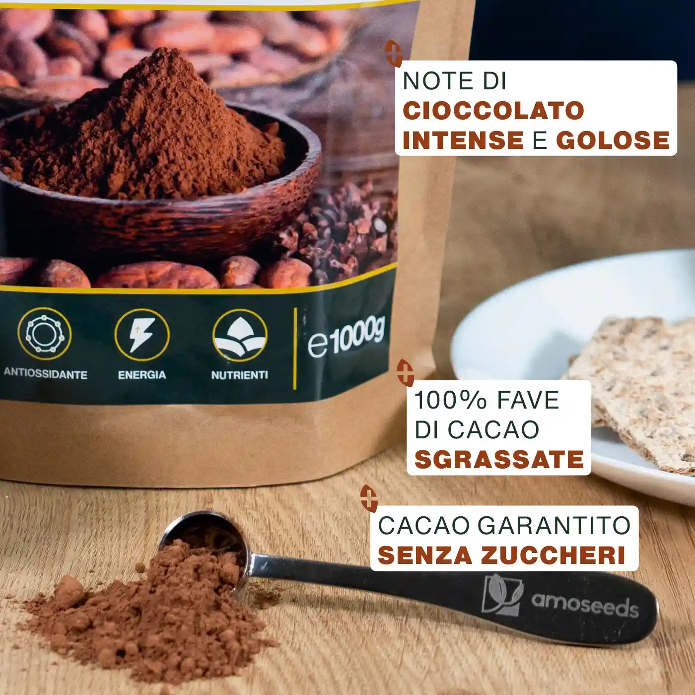 - CERTIFICATO BIOLOGICO: bustina Kraft richiudibile e riciclabile da 1kg di polvere di fave di Cacao sgrassate senza zuccheri Bio di qualità superiore. Prodotto 100% naturale, vegano, senza zuccheri aggiunti, additivi, conservanti, OGM, coloranti artificiali, lattosio, soia e glutine. Ogni lotto è testato da terzi per garantirne qualità e purezza.